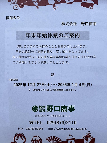 2025年年末年始の休業をお知らせいたします。