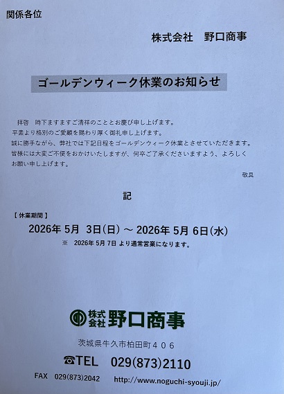 年末年始休業のお知らせです。