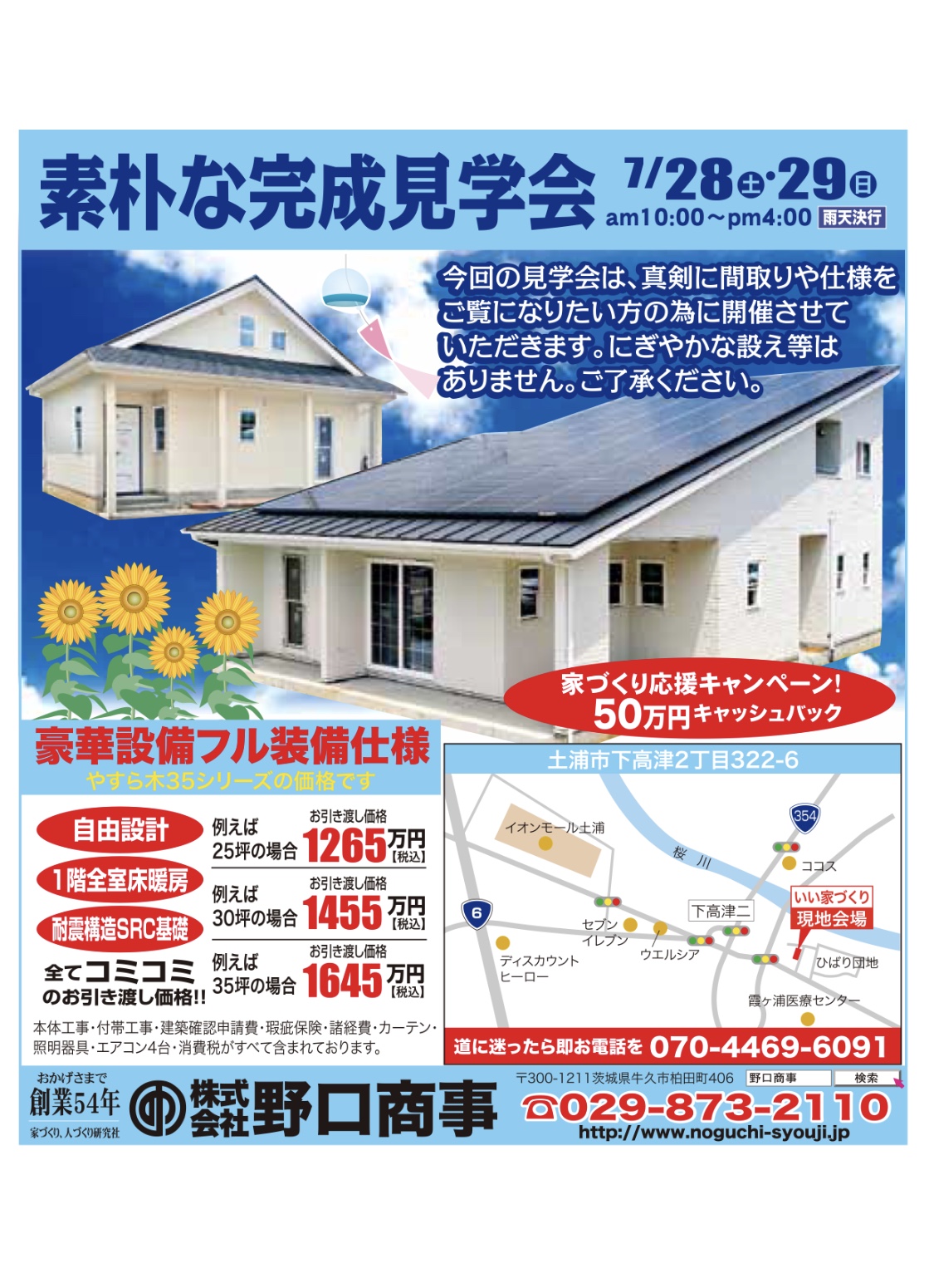 完成見学会開催です!! 7月28日(土)・29日(日) 開催地:土浦市下高津 午前10時~午後4時まで。
